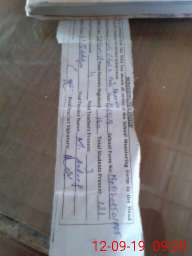 | School Visited by School Health & Nutrition Supervisor (No. of Visits) | 1 | Name1: | M Hasnain | Name2: | |