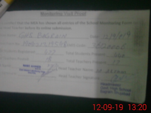 | EMIS Code: 36120006 | Name of School: GHS BAGRAIN V/P BAGRIAN TEH. SHUJABAD | |||