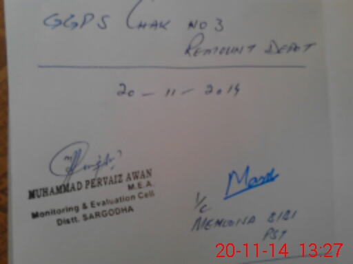 | EMIS Code: 38420724 | Name of School: GGPS CHAK NO.3 REMOUNT DEPOT | |||