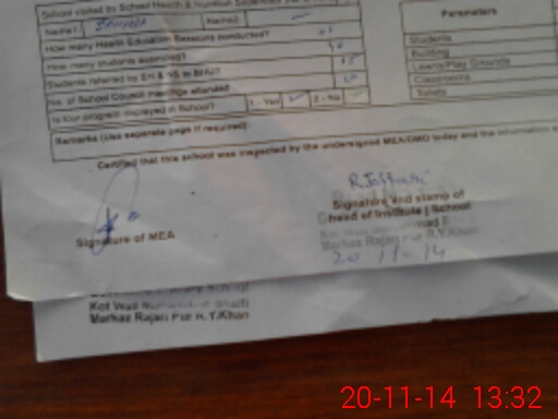 | Certified that this School was Inspected by the Undersigned MEA/DMO Today and the Information Stated Above is as Per Record. | |||||