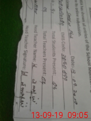 | Attendance Register | Head Teacher | MEA with School | Visit Proof |