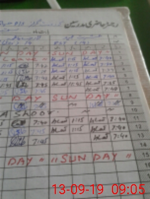 | CNIC | Full Name | Designation | R/C | Absence During Last Calender Month |