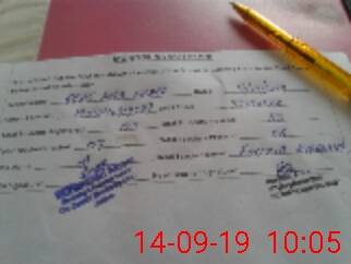 | Monitoring Date: 14-09-2019 | Start Time: 14-09-2019 09:19 AM | End Time: 14-09-2019 10:12 AM | Name of MEA: ZM**** Ak**** | |