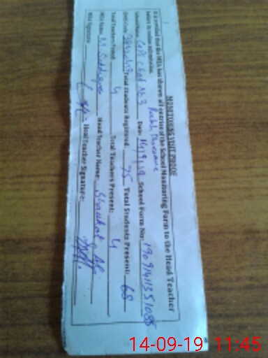 | School Visited by School Health & Nutrition Supervisor (No. of Visits) | 1 | Name1: | M HASNAIN | Name2: | |