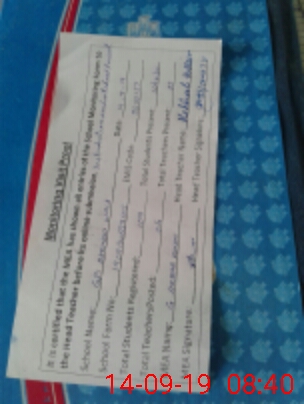 | Attendance Register | Head Teacher | MEA with School | Visit Proof |