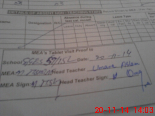 | Attendance Register | Head Teacher | MEA with School | Visit Proof |