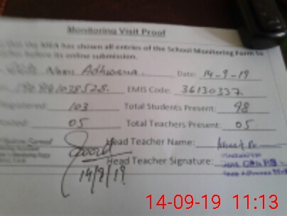 | Attendance Register | Head Teacher | MEA with School | Visit Proof |