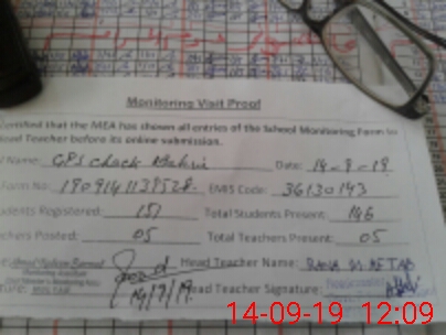 | Certified that this School was Inspected by the Undersigned MEA/DMO Today and the Information Stated Above is as Per Record. | |||||