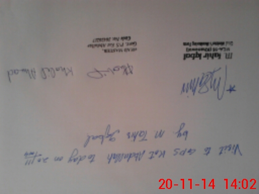 | Monitoring Date: 20-11-2014 | Start Time: 20-11-2014 01:20 PM | End Time: 20-11-2014 02:04 PM | Name of MEA: M.Ta**** Iq**** (S**** | |