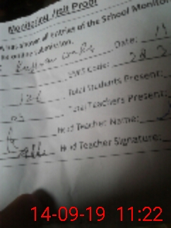 | Attendance Register | Head Teacher | MEA with School | Visit Proof |