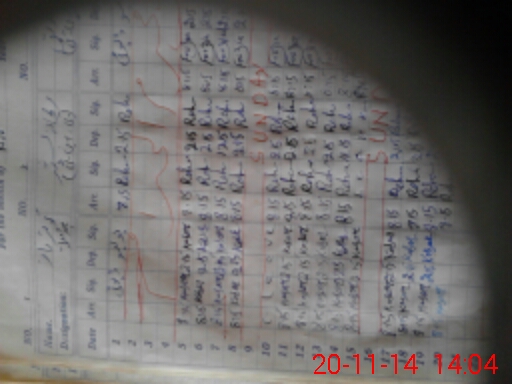 | CNIC | Full Name | Designation | R/C | Absence During Last Calender Month |