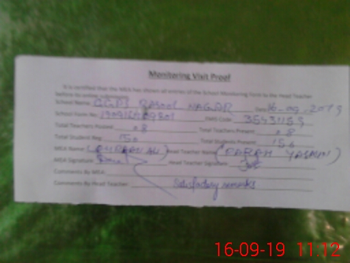 | Certified that this School was Inspected by the Undersigned MEA/DMO Today and the Information Stated Above is as Per Record. | |||||