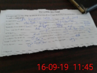 | Monitoring Date: 16-09-2019 | Start Time: 16-09-2019 10:39 AM | End Time: 16-09-2019 11:47 AM | Name of MEA: Ri**** Hu**** | |