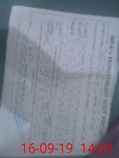 | School Visited by School Health & Nutrition Supervisor (No. of Visits) | Name1: | Ghazala Perveen | Name2: | ||