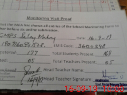 | Attendance Register | Head Teacher | MEA with School | Visit Proof |