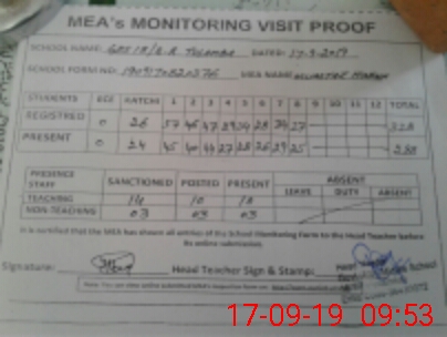 | Attendance Register | Head Teacher | MEA with School | Visit Proof |