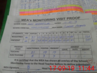 | Attendance Register | Head Teacher | MEA with School | Visit Proof |