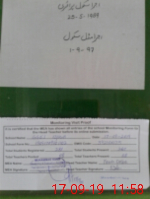 | Certified that this School was Inspected by the Undersigned MEA/DMO Today and the Information Stated Above is as Per Record. | |||||