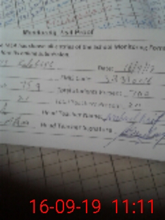 | Monitoring Date: 16-09-2019 | Start Time: 16-09-2019 10:55 AM | End Time: 16-09-2019 11:11 AM | Name of MEA: Mo**** Sa**** (R**** | |