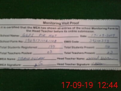 | Attendance Register | Head Teacher | MEA with School | Visit Proof |