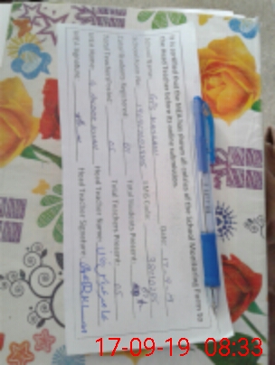 | School Visited by School Health & Nutrition Supervisor (No. of Visits) | 1 | Name1: | HASSAN MEHMOOD | Name2: | |