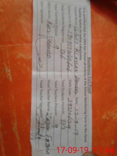| Attendance Register | Head Teacher | MEA with School | Visit Proof |