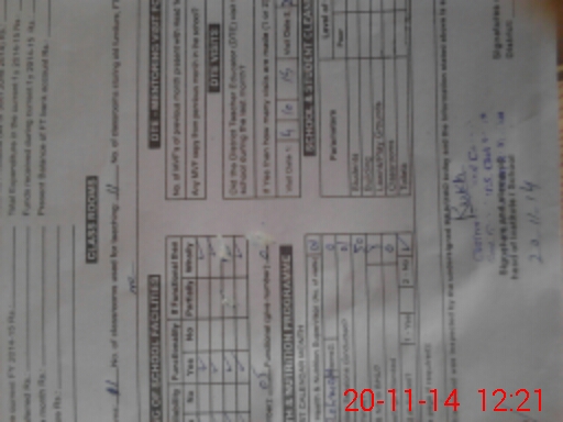 | Total no. of Classrooms: 11 No. of Classrooms Used for Teaching: 11 No. of Classrooms Storing Old Furniture, FTBs, etc: 0Comments if Any: Satisfactory |