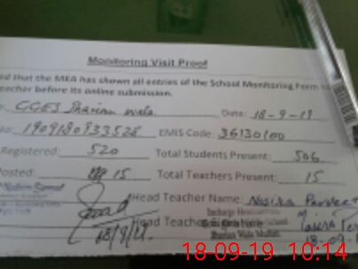 | Certified that this School was Inspected by the Undersigned MEA/DMO Today and the Information Stated Above is as Per Record. | |||||