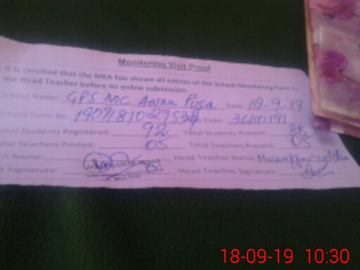 | EMIS Code: 36110191 | Name of School: GPS MC AWAN PURA | |||