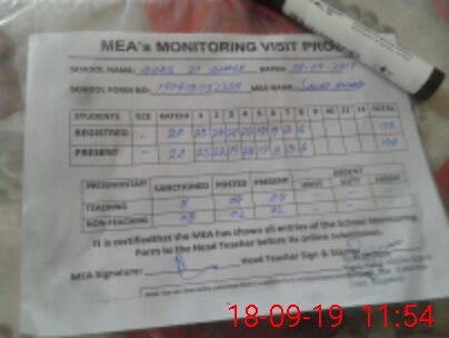 | Certified that this School was Inspected by the Undersigned MEA/DMO Today and the Information Stated Above is as Per Record. | |||||