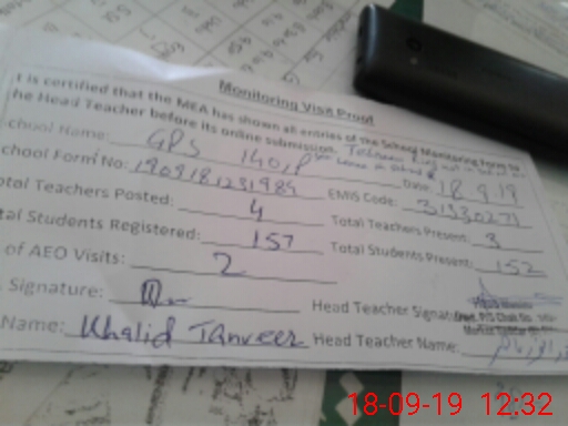| Attendance Register | Head Teacher | MEA with School | Visit Proof |