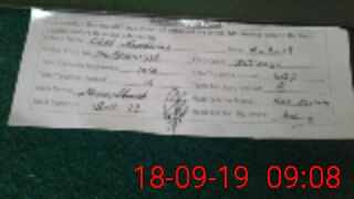 | Monitoring Date: 18-09-2019 | Start Time: 18-09-2019 08:11 AM | End Time: 18-09-2019 09:08 AM | Name of MEA: MU**** AH**** | |