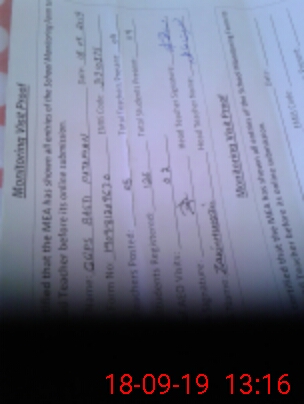 | Monitoring Date: 18-09-2019 | Start Time: 18-09-2019 12:09 PM | End Time: 18-09-2019 01:18 PM | Name of MEA: Za**** Hu**** | |