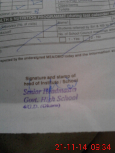 | Certified that this School was Inspected by the Undersigned MEA/DMO Today and the Information Stated Above is as Per Record. | |||||