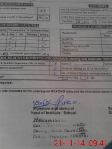 | Certified that this School was Inspected by the Undersigned MEA/DMO Today and the Information Stated Above is as Per Record. | |||||