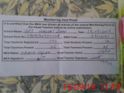 | Certified that this School was Inspected by the Undersigned MEA/DMO Today and the Information Stated Above is as Per Record. | |||||