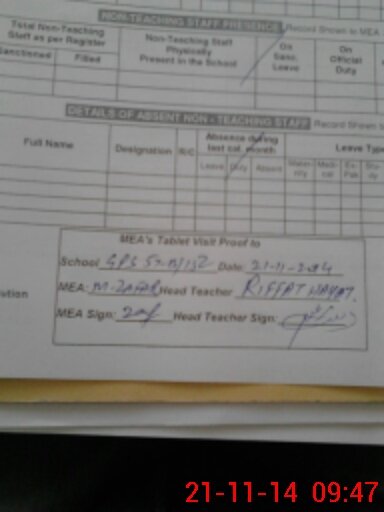 | Attendance Register | Head Teacher | MEA with School | Visit Proof |