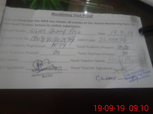 | EMIS Code: 36110078 | Name of School: GGHS SHARIF PURA MULTAN | |||