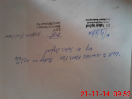 | Monitoring Date: 21-11-2014 | Start Time: 21-11-2014 08:55 AM | End Time: 21-11-2014 09:55 AM | Name of MEA: M.Ta**** Iq**** (S**** | |
