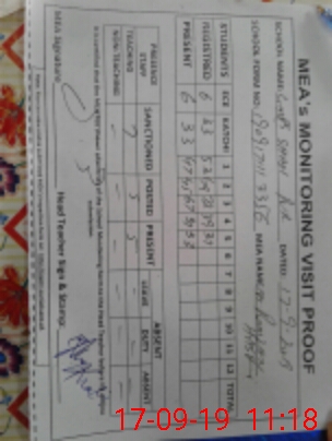 | Attendance Register | Head Teacher | MEA with School | Visit Proof |