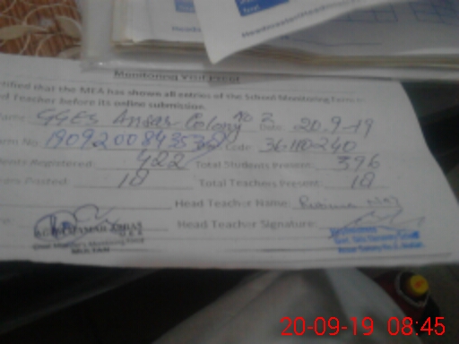 | Certified that this School was Inspected by the Undersigned MEA/DMO Today and the Information Stated Above is as Per Record. | |||||