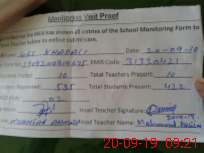 | Certified that this School was Inspected by the Undersigned MEA/DMO Today and the Information Stated Above is as Per Record. | |||||