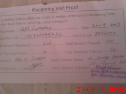 | EMIS Code: 31150172 | Name of School: GHS LOHARKA | |||