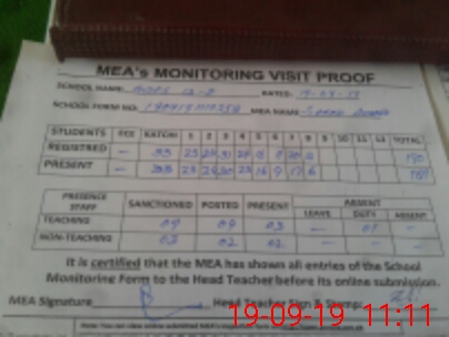 | Attendance Register | Head Teacher | MEA with School | Visit Proof |