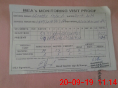 | Attendance Register | Head Teacher | MEA with School | Visit Proof |