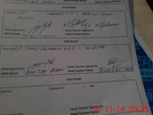 | Attendance Register | Head Teacher | MEA with School | Visit Proof |