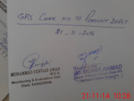 | EMIS Code: 38420484 | Name of School: GPS CHAK NO.10 REMOUNT DEPOT | |||