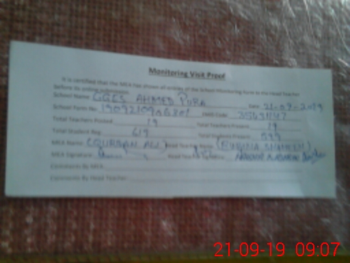 | Attendance Register | Head Teacher | MEA with School | Visit Proof |