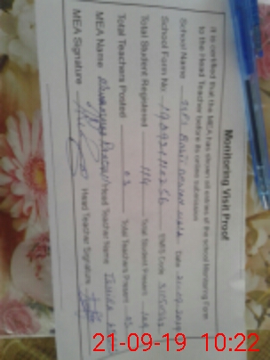 | Attendance Register | Head Teacher | MEA with School | Visit Proof |