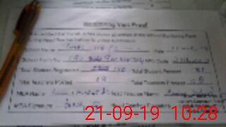 | Monitoring Date: 21-09-2019 | Start Time: 21-09-2019 09:20 AM | End Time: 21-09-2019 10:28 AM | Name of MEA: EJ**** HU**** BN**** | |